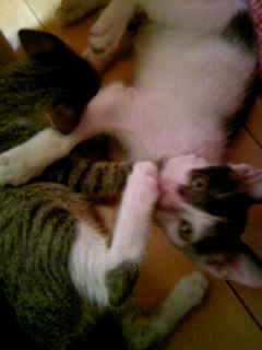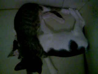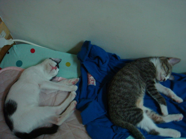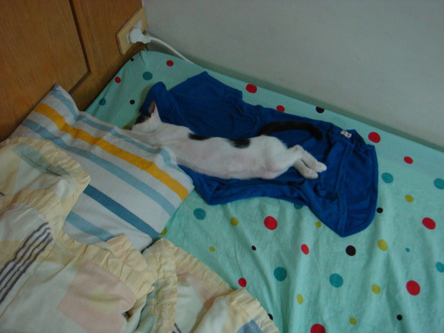 這張是番茄幫短短買新的墊子然後胖子就睡在短短原本的POLO衫上面